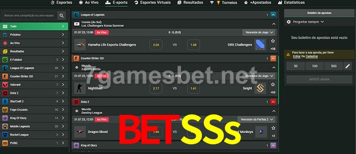 A aposta BetSSs oferece aos jogadores a experiência mais conveniente de apostas em eSports!